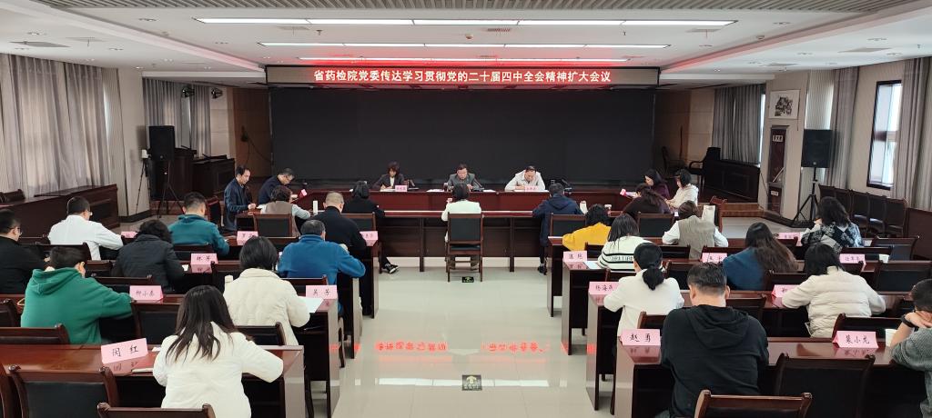 10月28日,省药检院召开党委扩大会议,传达学习贯彻党的二十届四中全会精神。会议由党委书记、院长王文林主持。院领导、中层以上干部参加会议。