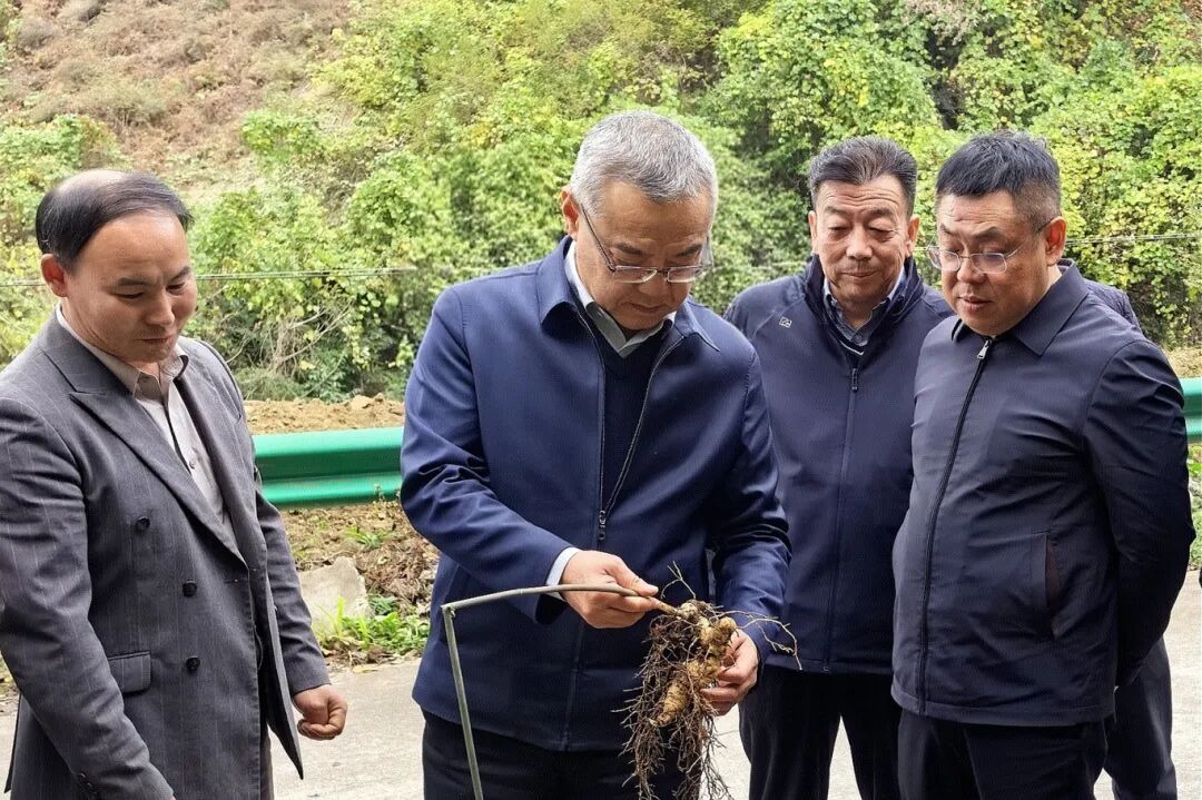 调研组深入牛羊河村龙洞沟片区,现场观摩黄精采挖作业,详细了解林下中药材种植规模、生长周期及市场行情。查看新采收的野菊花及新建的加工储藏设施。该村通过完善产业链条、提升加工能力来增加产品附加值的探索实践获得调研组肯定。