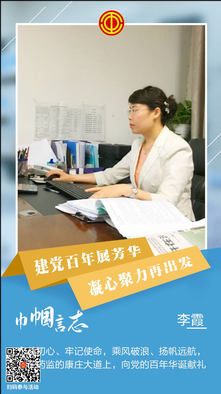 永葆初心、牢记使命,乘风破浪、扬帆远航,在药监的康庄大道上,向党的百年华诞献礼。——李霞